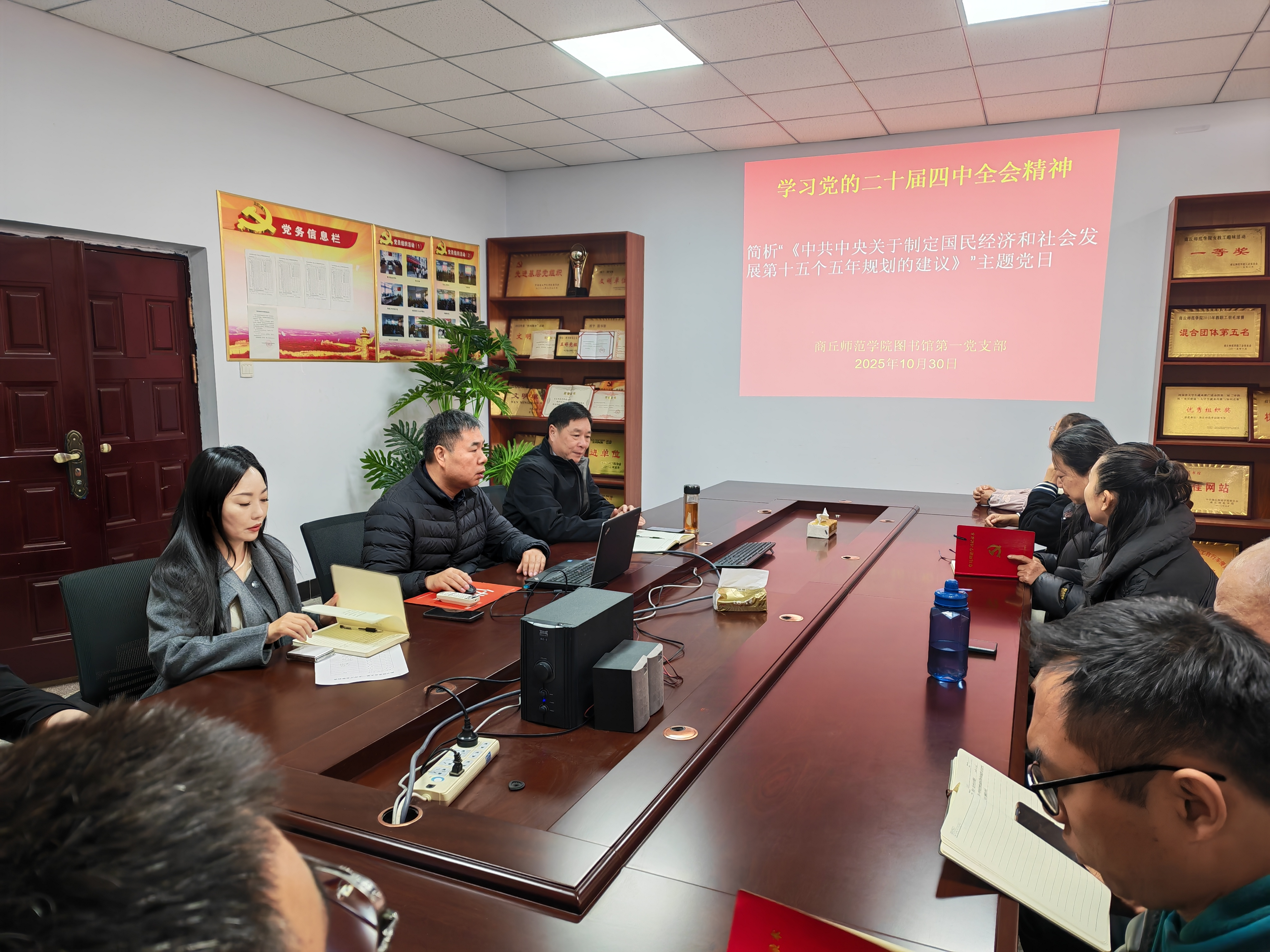 党的二十届四中全会在2025年10月20日至23日在北京召开,大会通过了《中共中央关于制定国民经济和社会发展第十五个五年规划的建议》。10月30日上午,在六楼党员活动室,一支部书记为了便于支部党员更好地理解《建议》的内容与精神,特对《建议》做了简析与说明,举行了相关的主题党日活动。