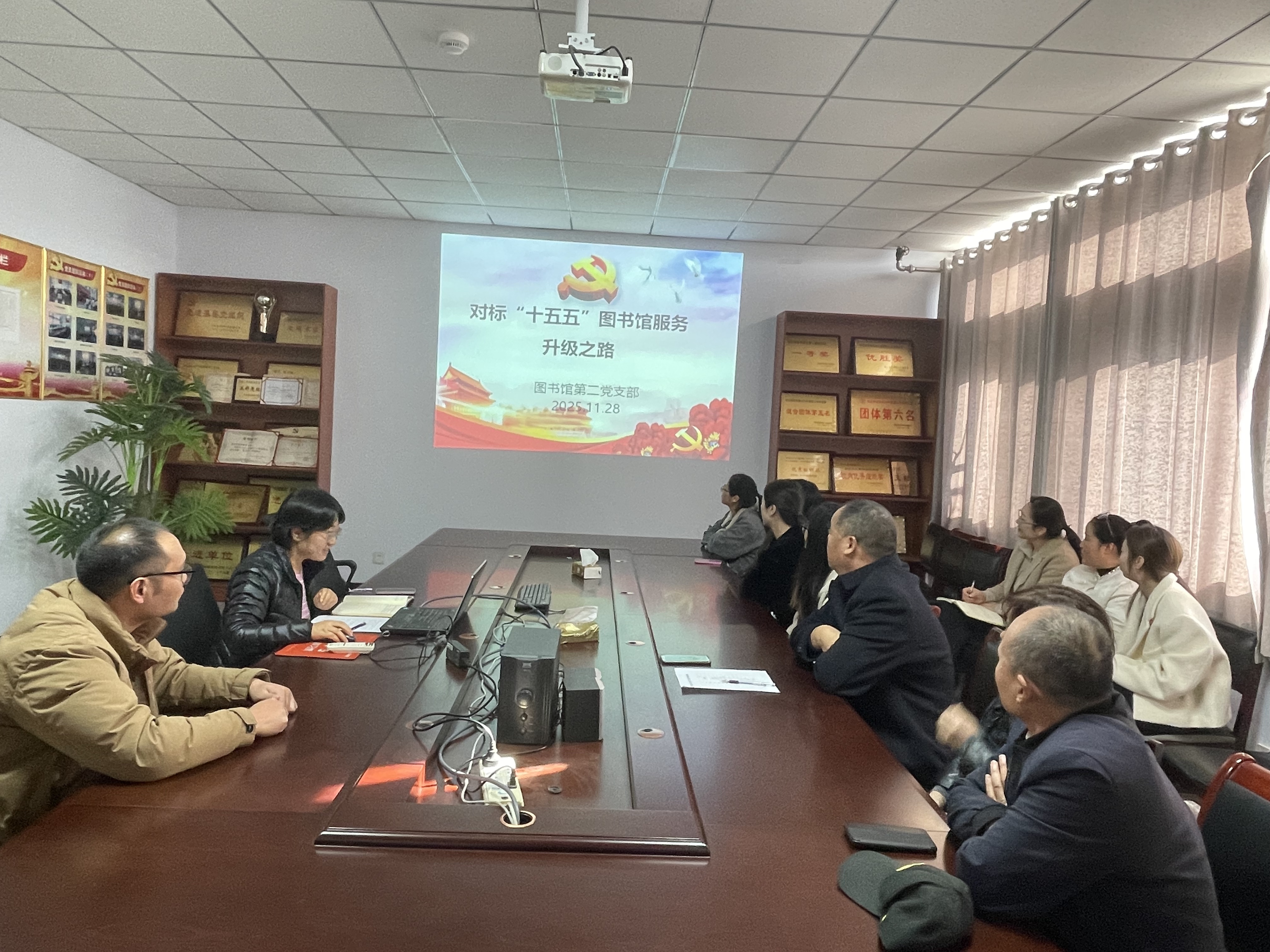 为精准谋划未来发展,11月28日上午,商丘师范学院图书馆第二党支部在梁园校区图书馆六楼党员活动室,成功举办了以“对标十五五,图书馆服务升级之路”为主题的主题党日活动。该支部书记李凤花主讲,为全体党员勾勒了从“事务员”向“战略贡献者”转型的清晰路径。