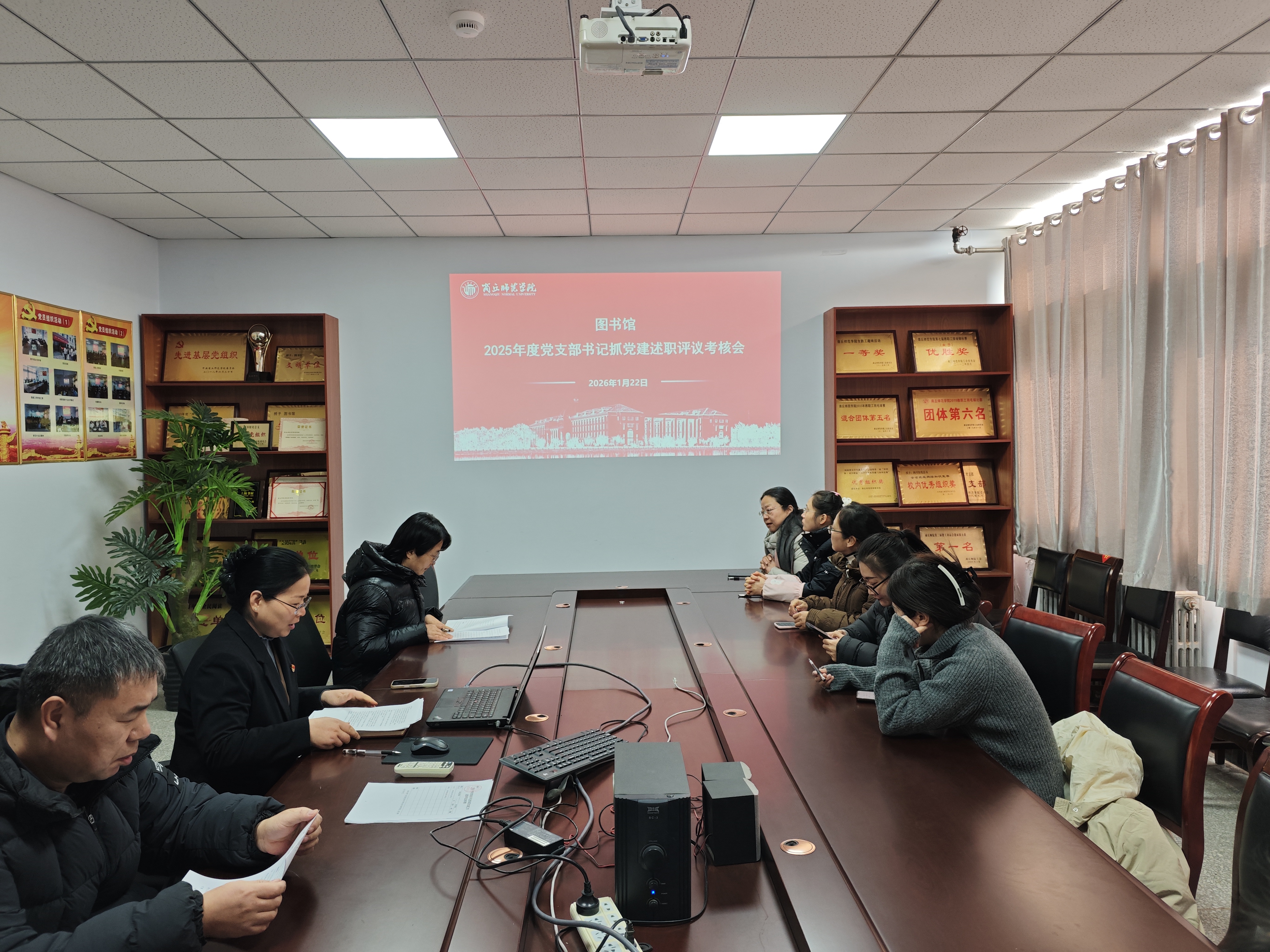 1月22日,图书馆党总支在党员会议室召开2025年度党支部书记抓党建工作述职评议会。会议由图书馆副馆长张颜梅主持,图书馆各党支部书记、支部委员及党员代表参加会议。