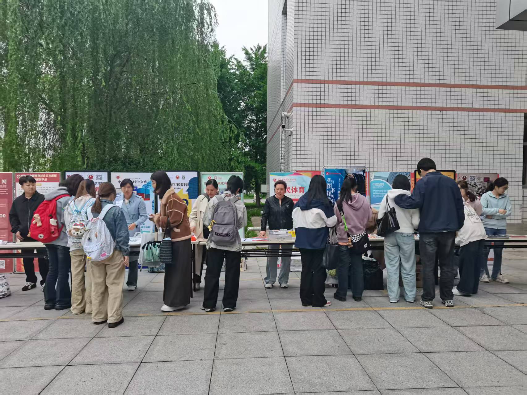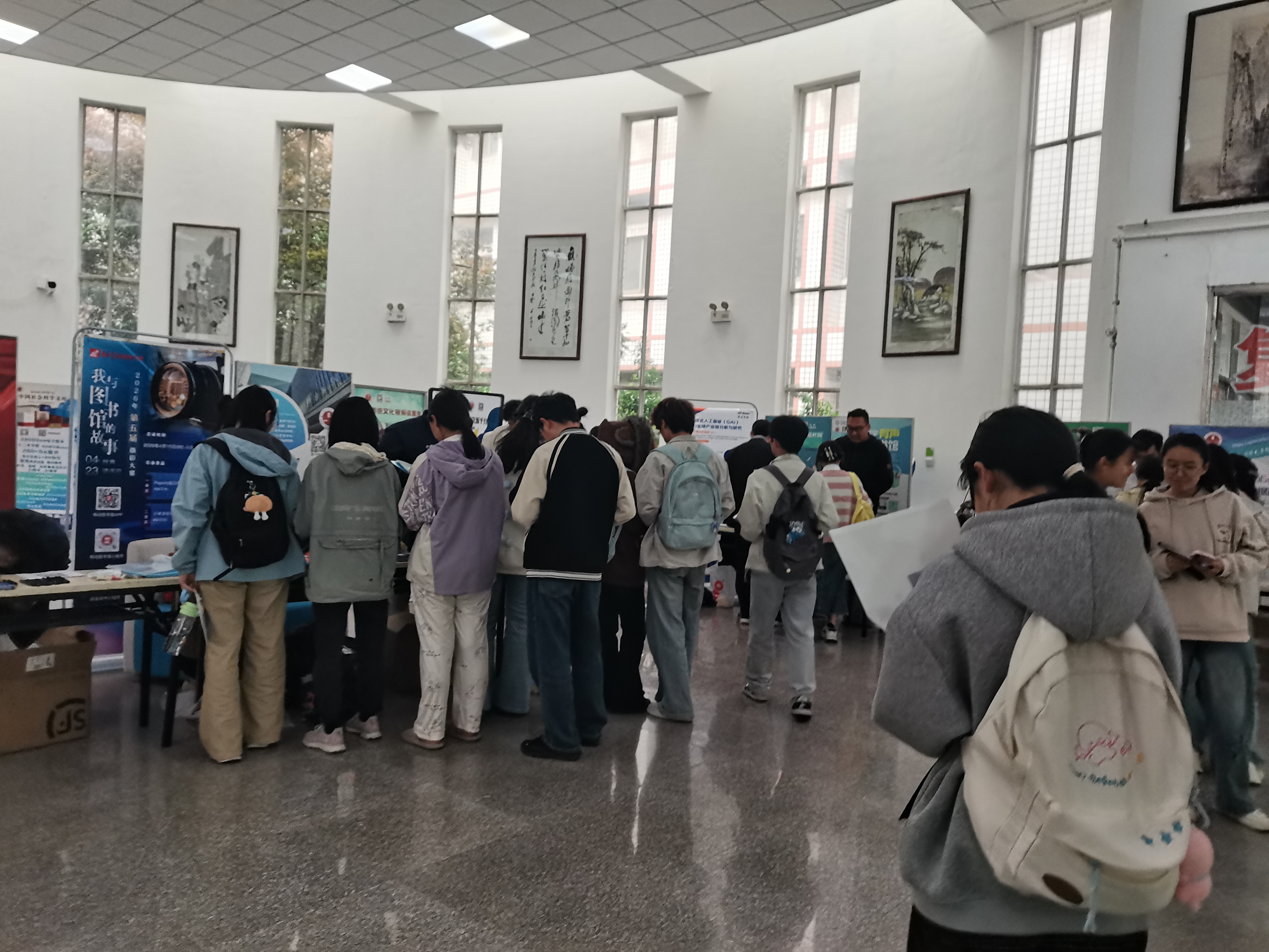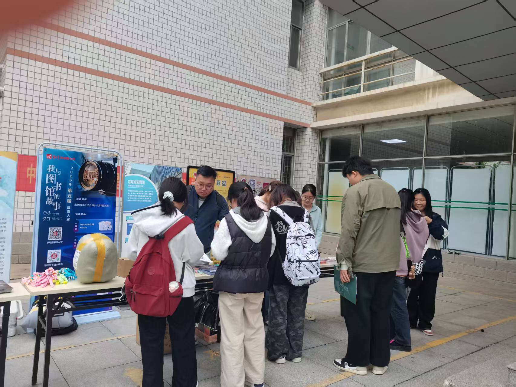 为提升师生对图书馆数字资源的认知与利用率,增强使用技能,助力学校高质量发展,4月21日,图书馆在梁园校区图书馆门前广场如期举办数字资源线下宣传推广活动。活动初期在门前广场有序开展,期间突发降雨,工作人员迅速响应,及时将活动场地移至图书馆一楼大厅,确保活动顺利推进,全程吸引大批师生参与。