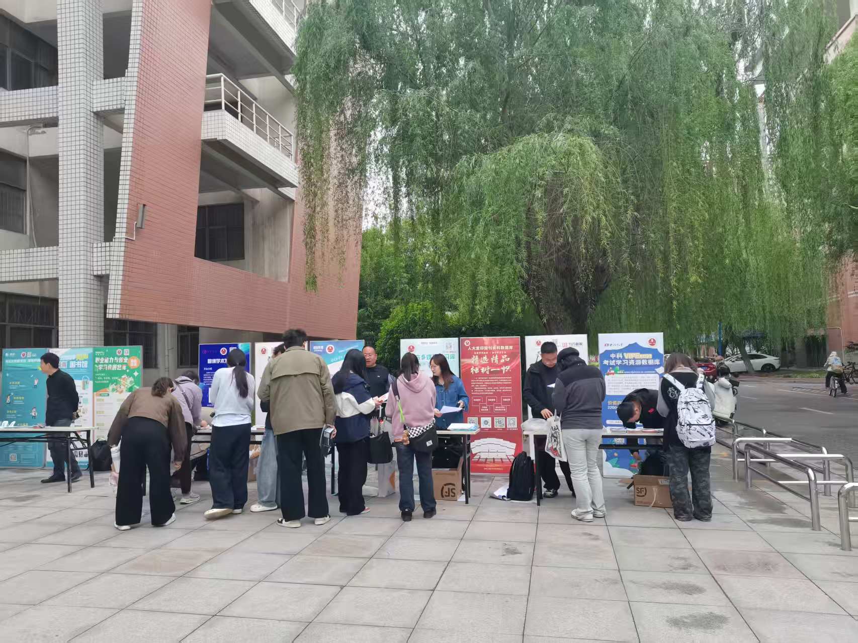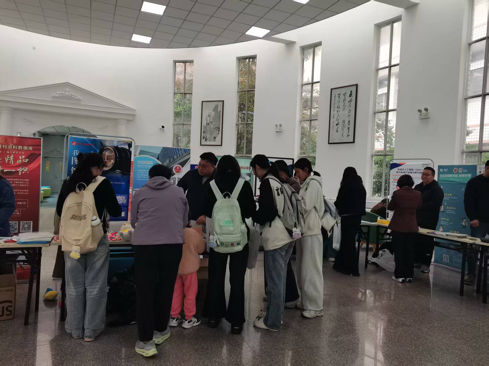活动于当日9:30启动,13:00结束,聚焦师生学研需求,邀请中国知网、万方学位论文数据库等多家主流数据库厂商及代理商驻点,搭建一站式服务平台。工作人员通过展板、手册等形式,直观呈现各数据库的资源特色与应用场景,方便师生快速了解其优势。